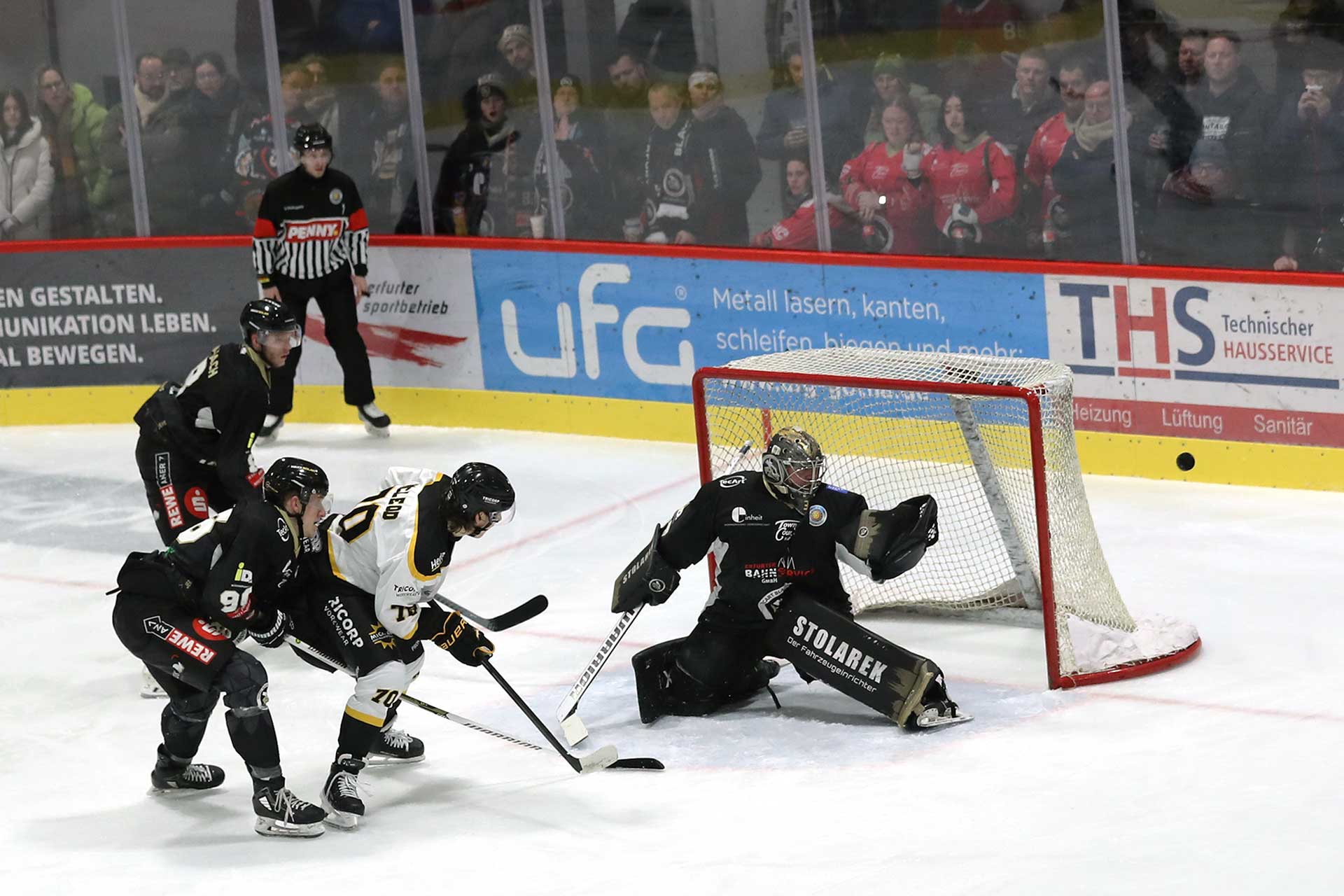 Im Stile eines Meisterschaftsanwärters legten die Tilburg Trappers los und schnürten die TecArt Black Dragons in den ersten Spielminuten in ihrem eigenen Drittel ein. In der zweiten Spielminute musste unser Torhüter Patrick Glatzel, der heute eine starke Leistung bot, bereits sein ganzes Können aufbieten, um vor einem einschussbereiten Spieler der Tilburg Trappers den frühen Rückstand zu verhindern. Im Anschluss an diese Situation hatten die Tec Art Black Dragons in Überzahl in Führung zu gehen. In der der dritten und fünften Minute des Spiels musste jeweils ein Spieler der Tilburg Trappers auf die Strafbank. War in den letzten Wochen das Überzahlspiel ein Garant für Tore, so blieb heute das Powerplay ohne Torerfolg. Und so kam es wie es kommen musste und die Tilburg Trappers gingen durch ihren Topscorer, in der 8. Minute des Spiels mit 1:0 in Führung. Der Torschütze war Phillip Marinaccio, der den Puck nach einem präzisen Pass von Matt Mc Leod vor das Tor der TecArt Black Dragons im Tor versenkte. Mit dieser Führung im Rücken versuchten die Tilburg Trappers, die zumindest im ersten Drittel frischer und aktiver wirkten, ein weiteres Tor zu erzielen, scheiterten aber immer wieder am Torhüter der TecArt Black Dragons. In der 17. Minute des ersten Drittels war es dann Maurice Keil, der mit einem Lattentreffer fast den Ausgleich erzielt hätte. Aber wie schon erwähnt war das Glück heute nicht auf unserer Seite und so ging es mit einer knappen Führung für die Tilburg Trappers in die Kabine.