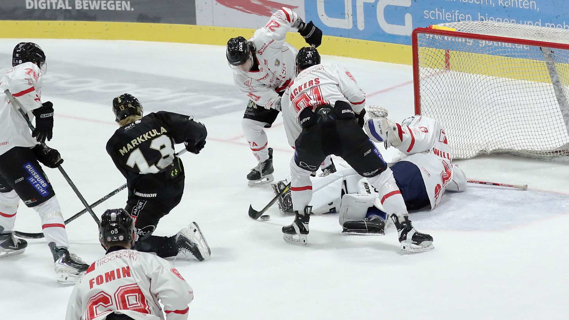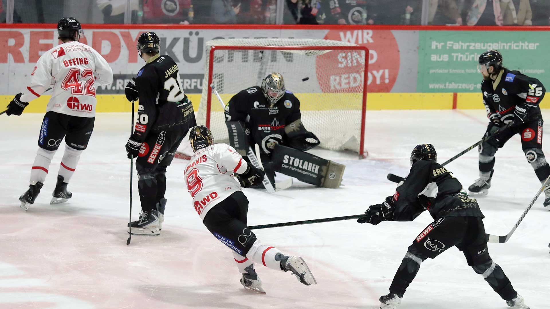 Drittel drei. Fast ein Sinnbild. Duisburg drückt. Erfurt kommt nicht in den Vorwärtsgang. Zu viele Unstimmigkeiten liegen als Hemmschuh im Weg. Erfurts Überzahlspiel verpufft wirkungslos.
