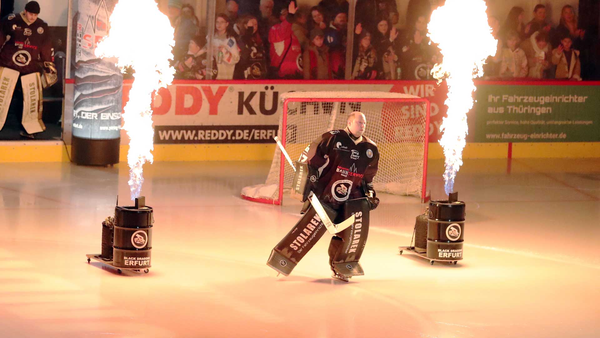 49. Minute: Powerbreak. Drachen-Coach Sebastian Wolsch lässt es ohne Ansprache verstreichen. Alles schon in der Drittelpause in der Kabine gesagt. Erfolg mäßig. Was soll man da noch groß fabulieren. Aber seinen Jungs ist das Aufbäumen anzumerken. Man will die Füchse reizen, sie aus Erfurts Bau vertreiben. Immer wieder fliegen die Pucks nur Zentimeter am Kasten der Gäste vorbei oder werden von Duisburgs Keeper Leon Willerscheid unschädlich gemacht. Letztes Mittel: 59. Minute, noch 77 Sekunden zu spielen. Torwart raus. 67 Sekunden zu spielen: Strafe Duisburg. Sechs gegen Vier. Jetzt muss doch was gehen. Geht nicht. Ein halbherziger Schussversuch der Drachen landet bei Duisburgs Topscorer Sandis Zolmanis. Und der schmettert den Puck ins verwaiste Erfurter Tor. Die wiedererwachten Drachen werden kalt erwischt - 1:3. Vulpes vulpes hat seinem Ruf alle Ehre gemacht und zugeschlagen. Beute gemacht. Listig und schlau.
