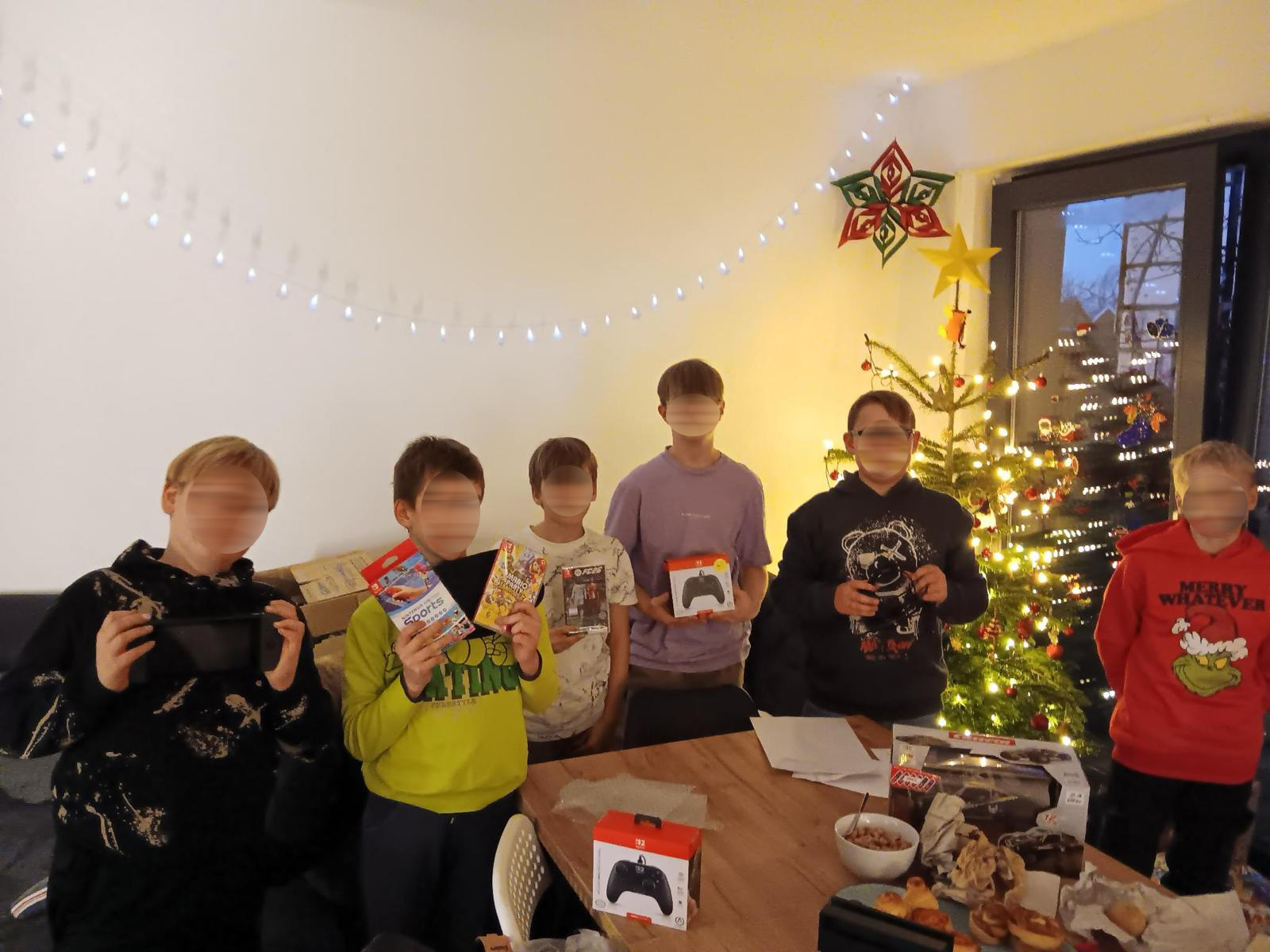 Nach dem Spiel konnte der EHC Erfurt für beide Organisationen jeweils eine Summe von 700 € und darüberhinaus Sachspenden an das Restaurant der Herzen überreichen. Gestern war dann auch endlich Bescherung im ISPE Azmannsdorf und sechs Kinder der ISPE Armannsdor haben ihr Geschenk auspacken dürfen. Eine Nintendo Switch 2 mit allem was dazu gehört stand ganz oben auf ihrem Wunschzettel. „Es ist schön, dass wir diesen Wunsch, gemeinsam mit unseren Fans, realisieren konnten“, so Präsident Martin Deutschmann.