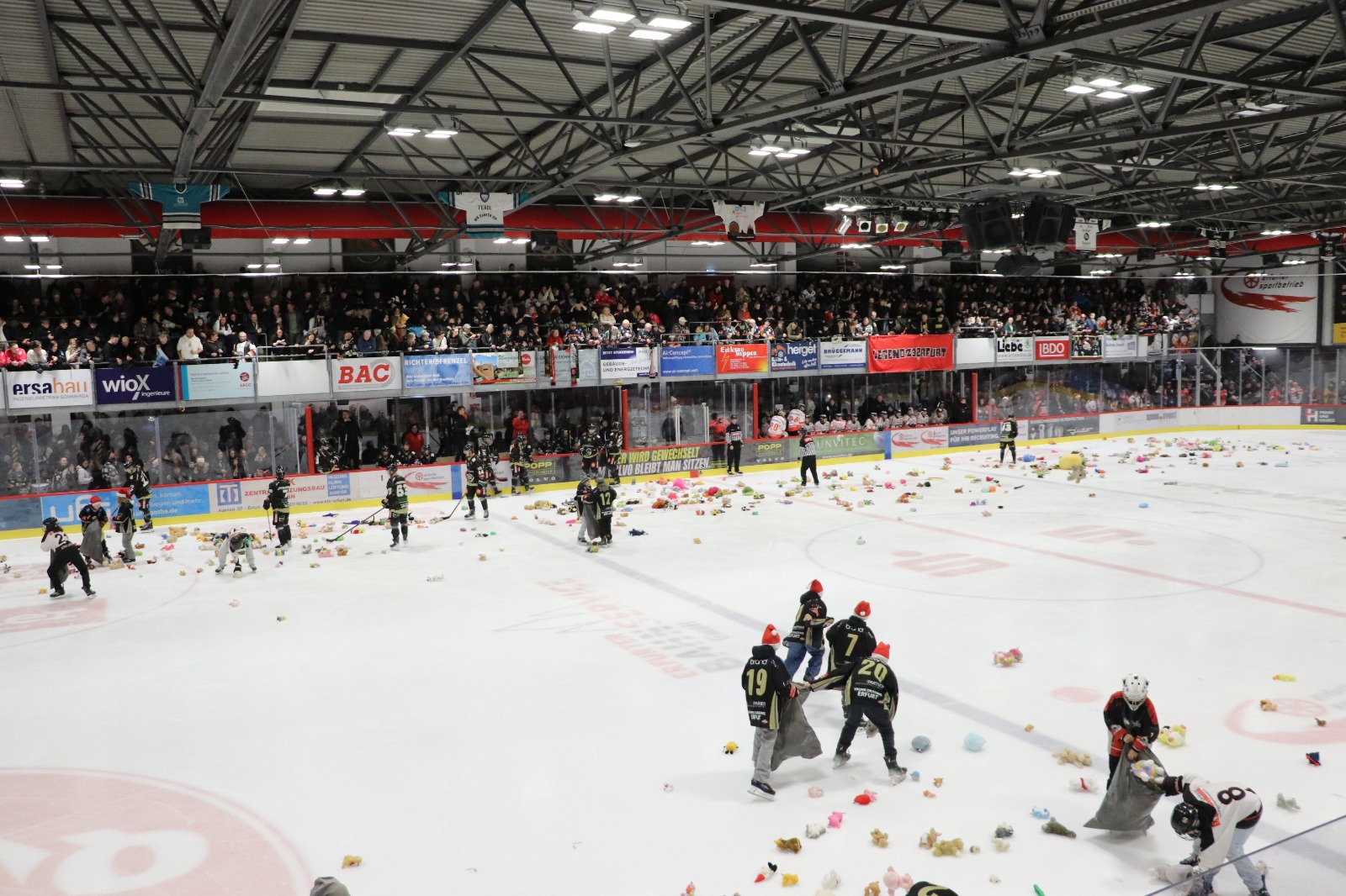 In Erfurt ist es mittlerweile eine feste Tradition, in der Vorweihnachtszeit beim ersten Tor unserer Jungs die Eisfläche mit Plüschtieren zu bewerfen. Auch dieses Jahr konnten wir frühzeitig die Fans von ihren mitgebrachten Stofftieren befreien und zwei Organisationen spenden. Das Restaurant der Herzen und die ISPE Azmannsdorf waren unsere Empfänger.