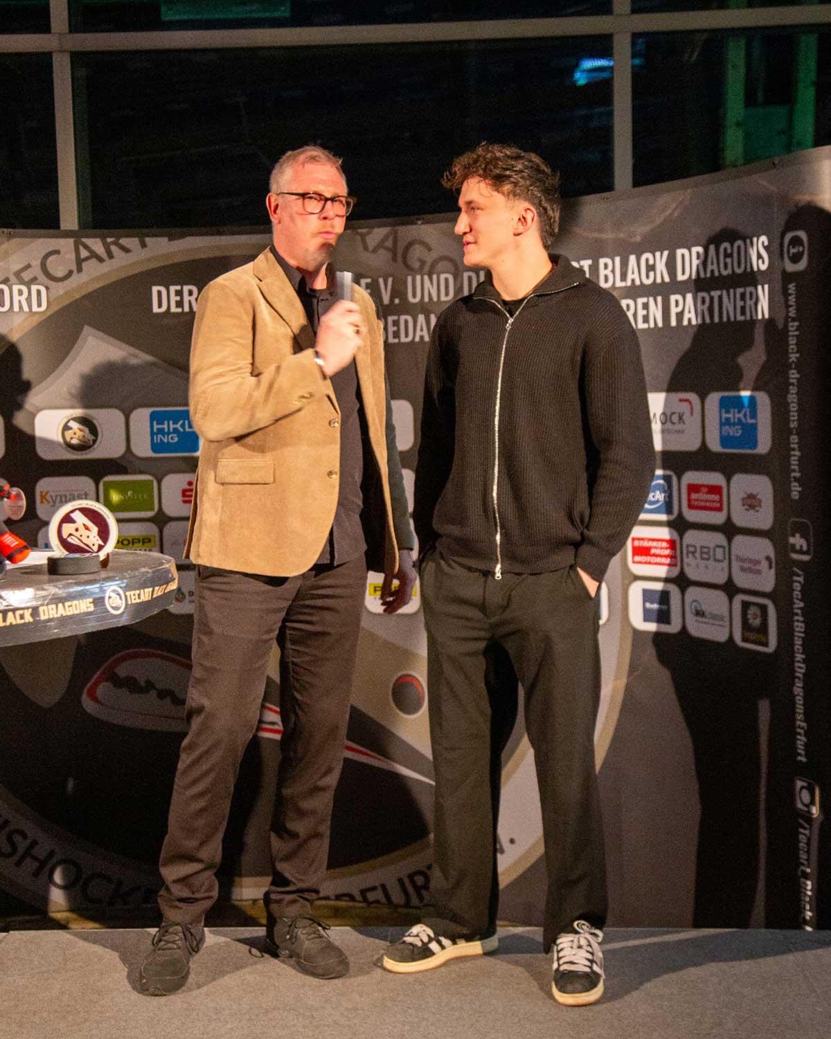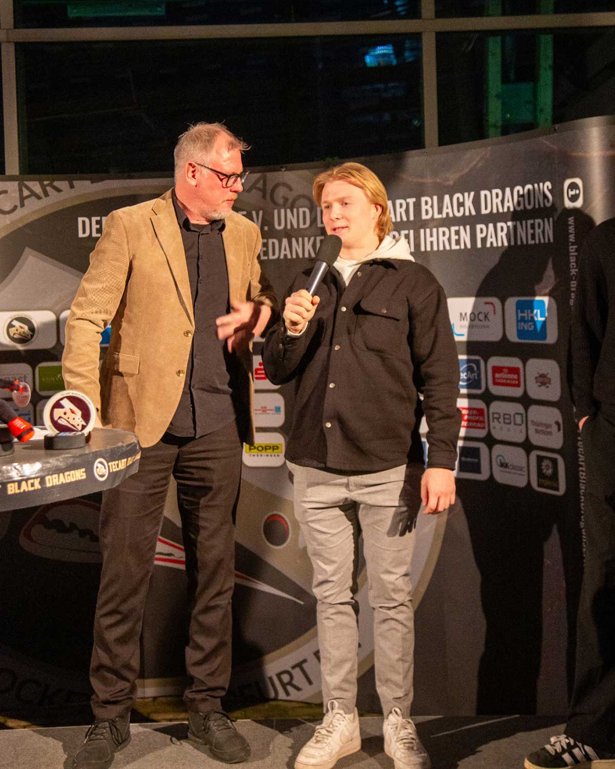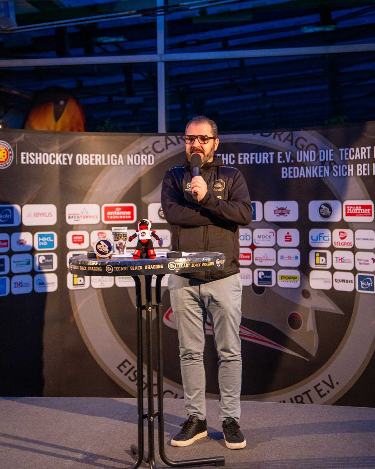 Um 18 Uhr eröffnete Präsident Martin Deutschmann die Feier mit einem Rückblick auf die Saison. Neben dem positiven Trend der Zuschauerzahlen und den weiteren geplanten Neuerungen in der Eishalle, blickte man auch auf das Ergebnis dieser Saison. Auch wenn die Playoff-Teilnahme nicht als Ziel ausgerufen wurde, machte der 8. Platz vor der Zwischenrunde ein wenig Hoffnung. Jetzt heißt es kurz den Kopf frei bekommen und gleich im Anschluss in die Planung der neuen Saison 2026/2027 einsteigen. Auch hier wird der EHC weiterhin den Erfurter Weg verfolgen und jungen Talenten aus dem eigenen Nachwuchs die Chance zum Einstieg in die Profimannschaft ermöglichen.