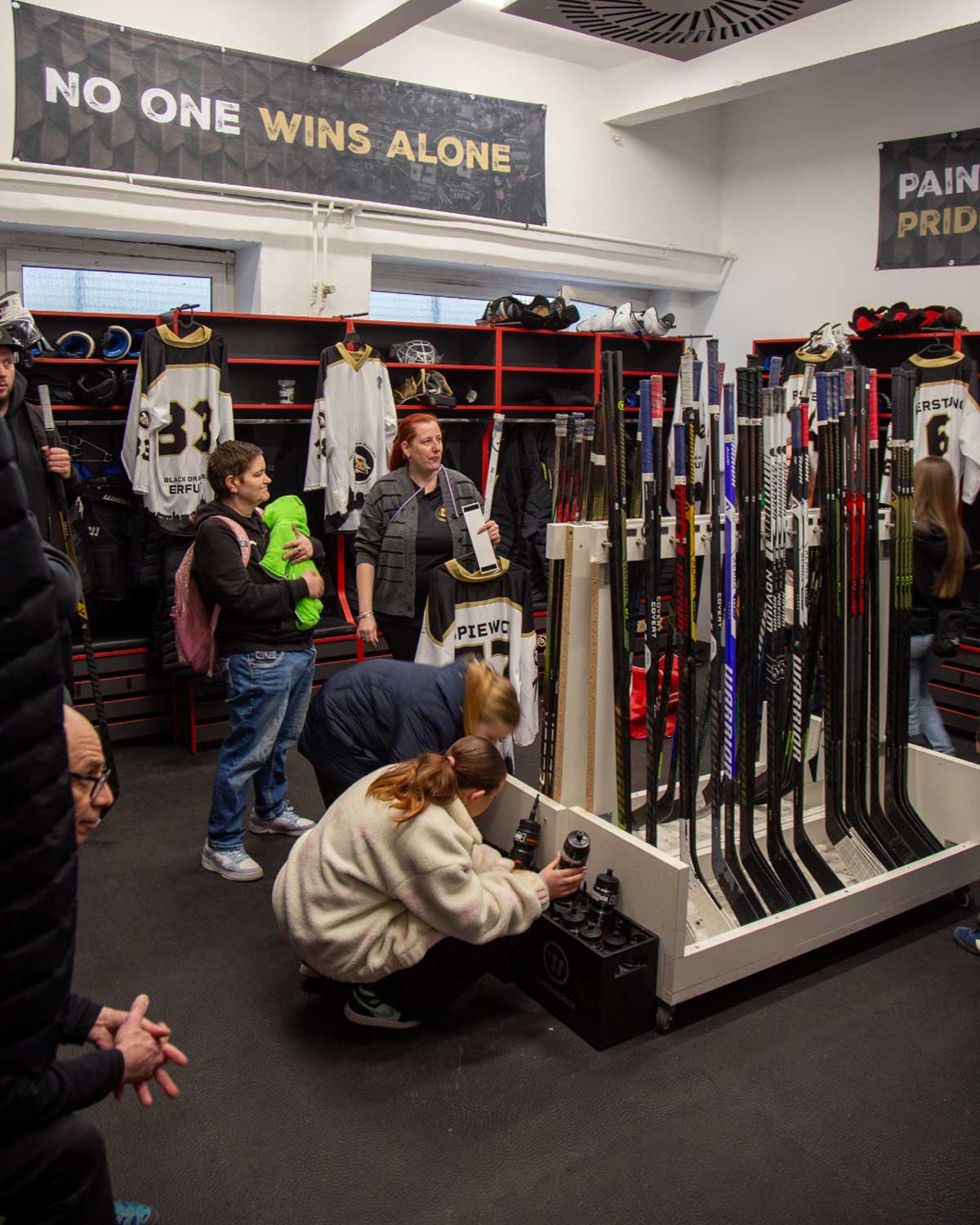 Am gestrigen Samstag lud der EHC all seine #bestenFans zur Saisonabschlussfeier ein. Und diesem Aufruf folgten viele von Euch. Startschuss machte der Kabinenabverkauf. Ab 16 Uhr konnten viele von Euch einen Blick in die Kabine der TecArt Black Dragons werfen und das eine oder andere Eishockeymaterial käuflich erwerben.