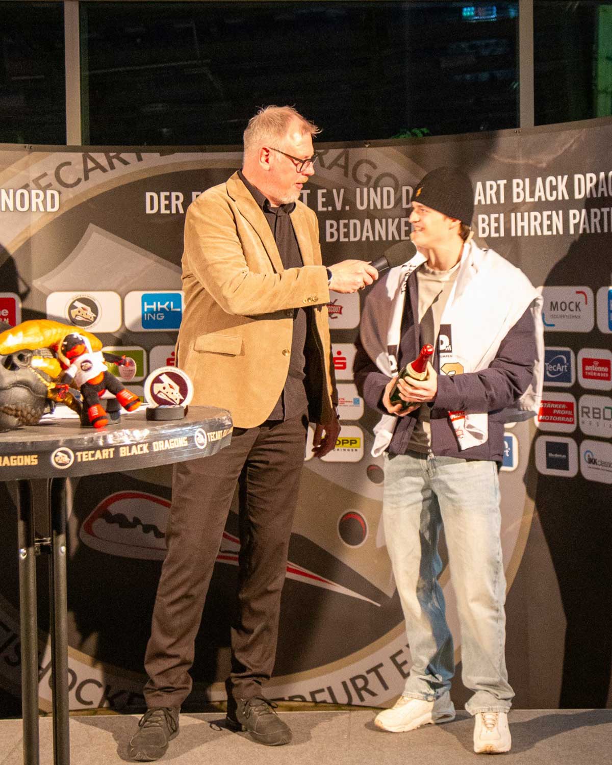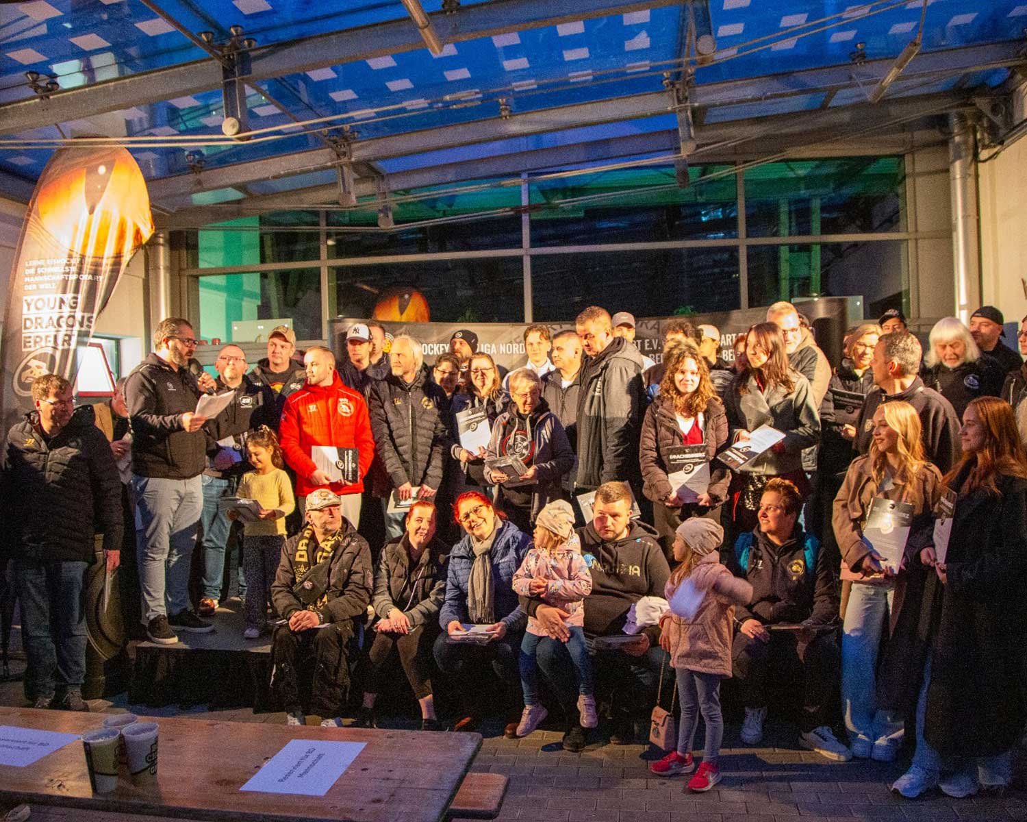 Anschließend wurden Eure gewählten Spieler und der Rookie der Saison 2025/2026 prämiert. Nils Herzog schaffte den 1. Platz bei der Rookie-Wertung sich zu sichern, während bei den Spielern Eric Wunderlich auf Platz 1, Miro Markkula und Enzo Herrschaft auf den Plätzen 2 und 3 sich dahinter einordneten.