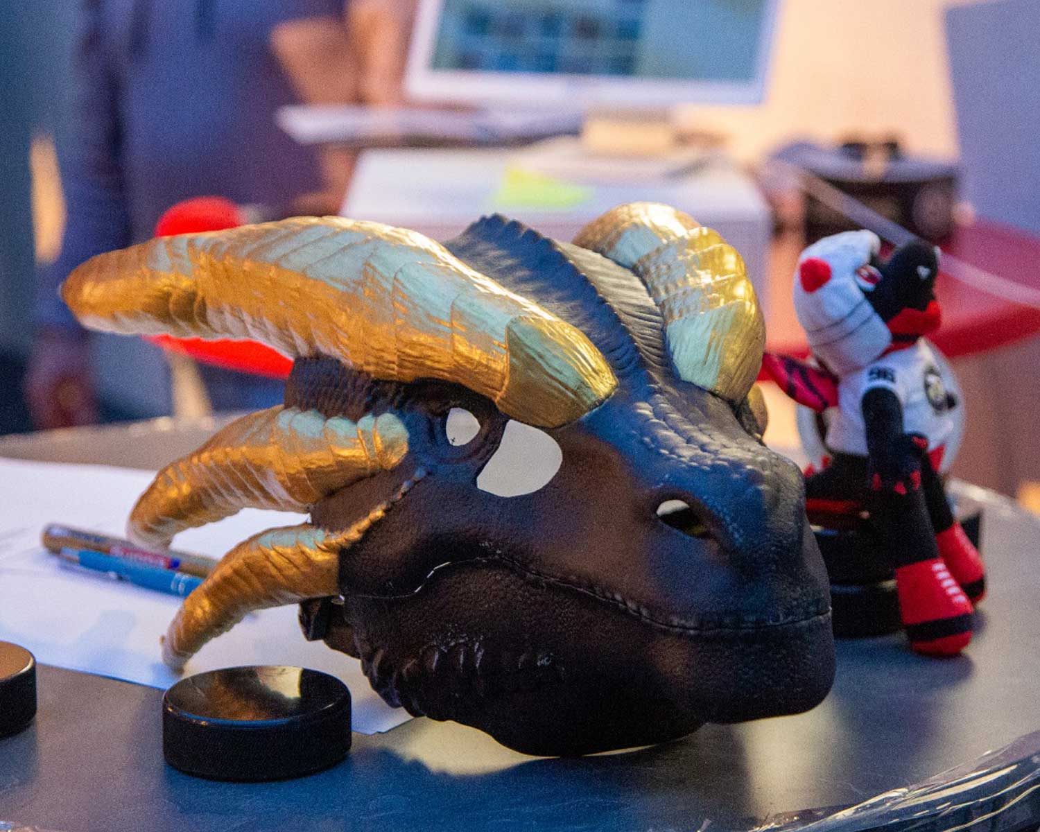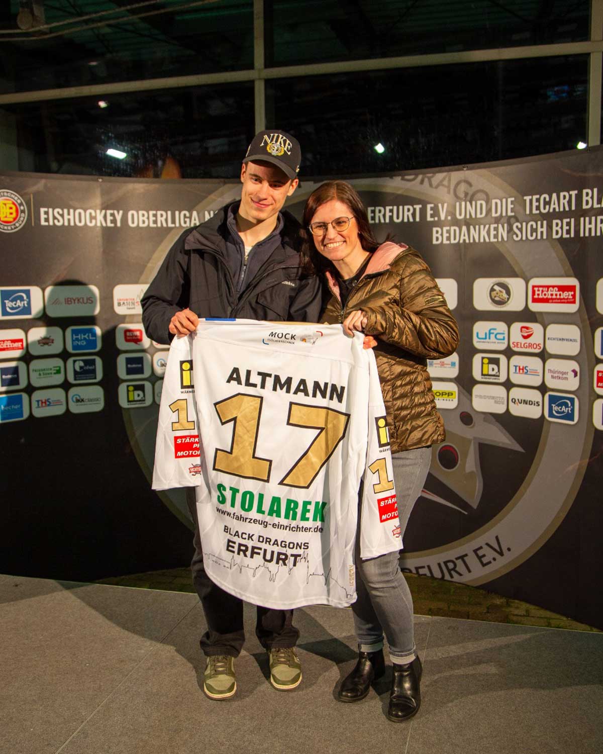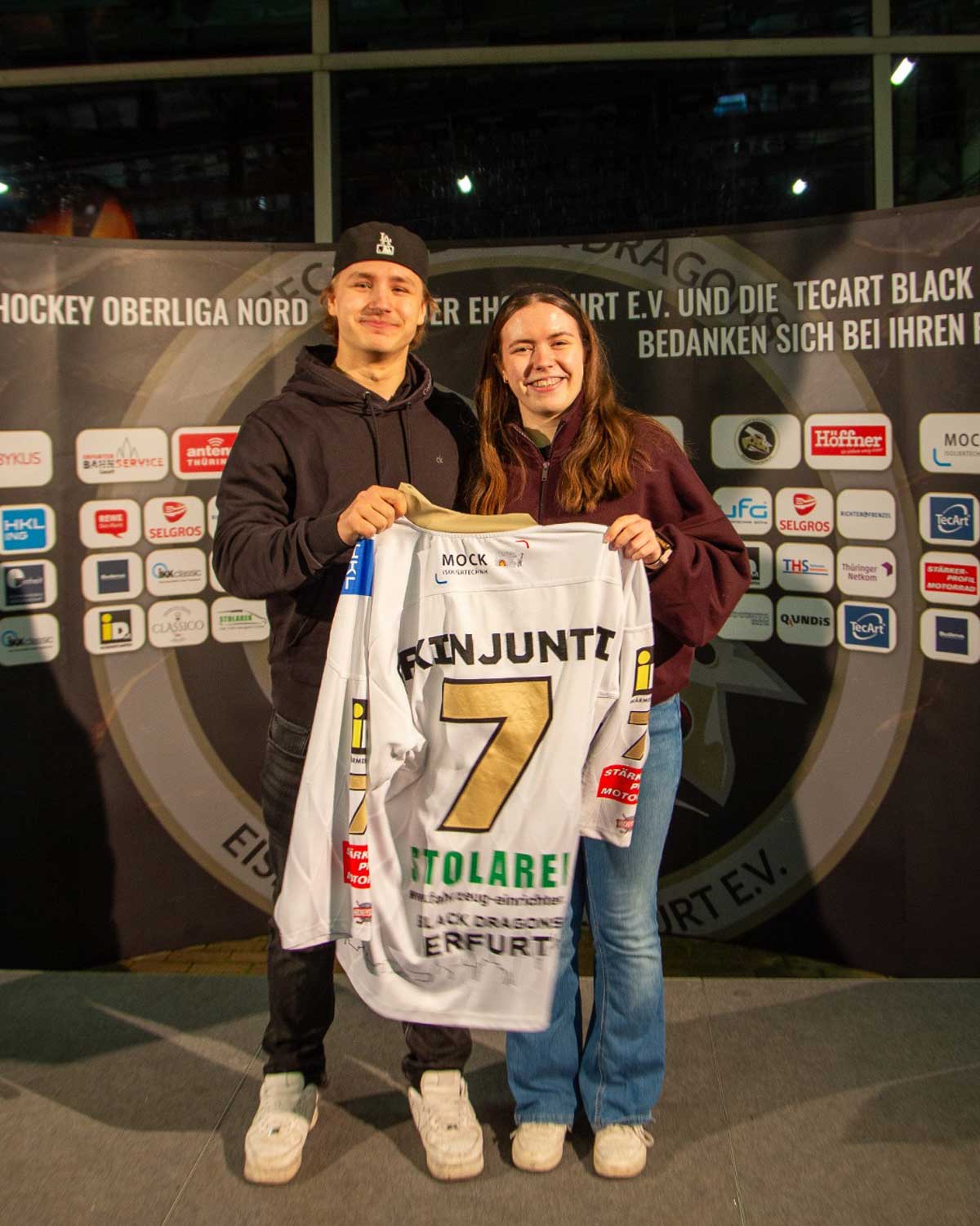 Abgerundet wurde unsere Saisonabschlussfeier mit der Trikotversteigerung. Hier wurde nicht nur auf die Trikots geboten, sondern neben dem Goldhelm für den Topscorer, die Drachenmaske brachte Santeri noch ein weiteres Textil unter den Hammer. Ganz zur Freude unserer weiblichen Fans.